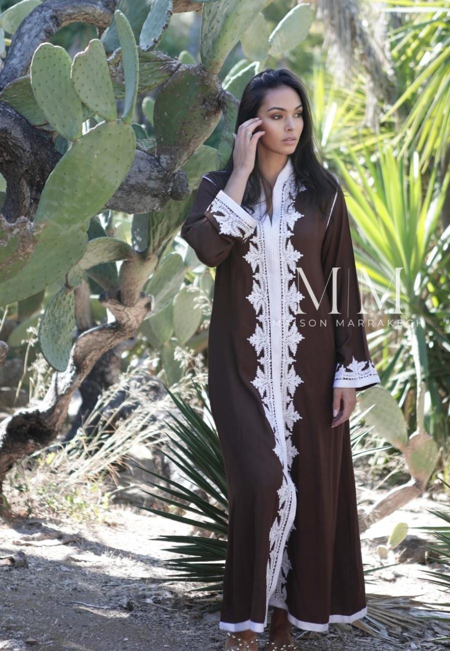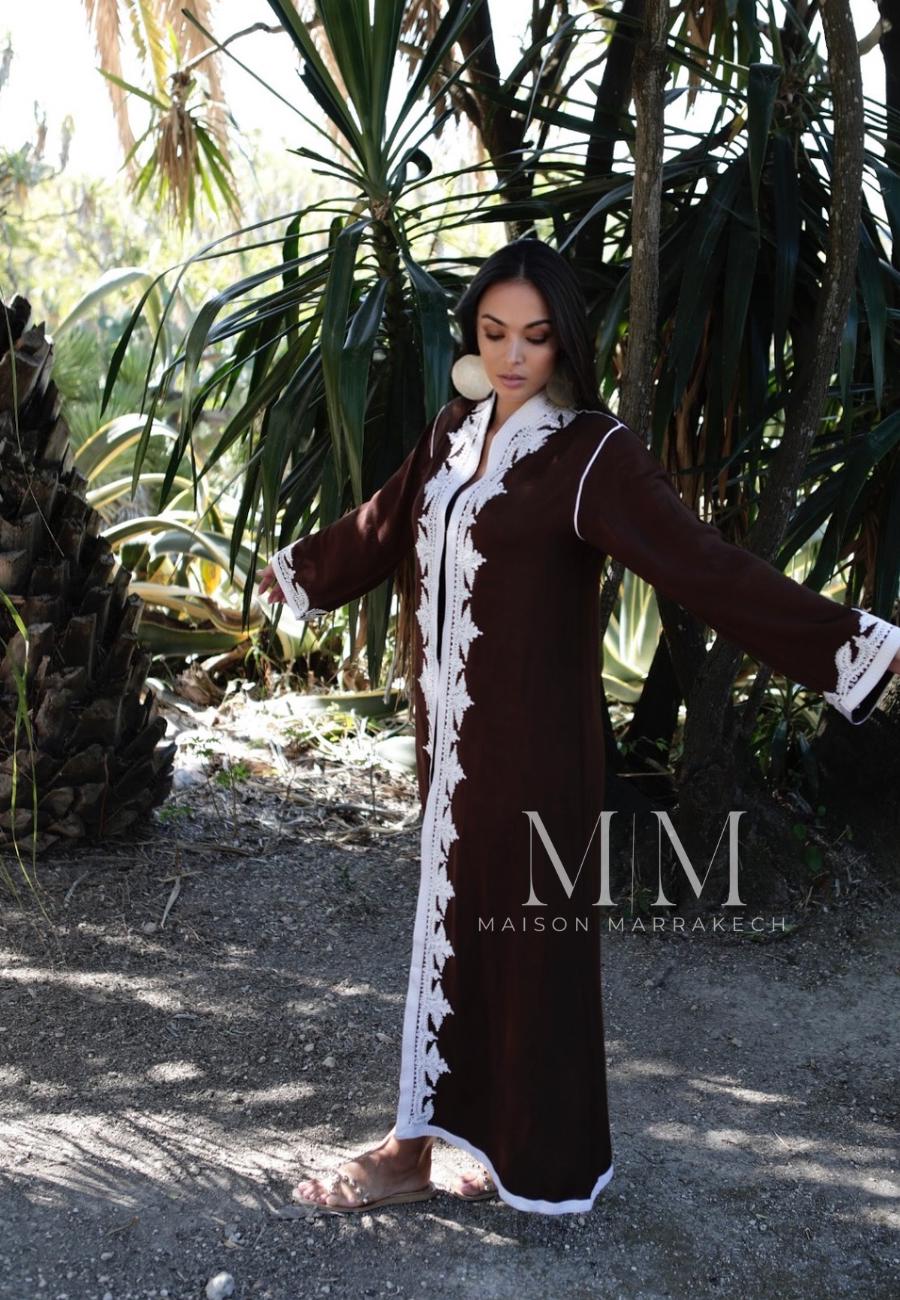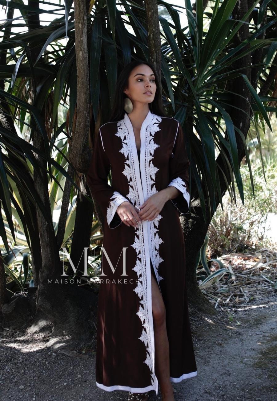 Autumn Brown & White Kaftan Caftan Maxi Dress- Karima-loungewear, home dress,beach kaftan,gift for her,party dress,holiday dress